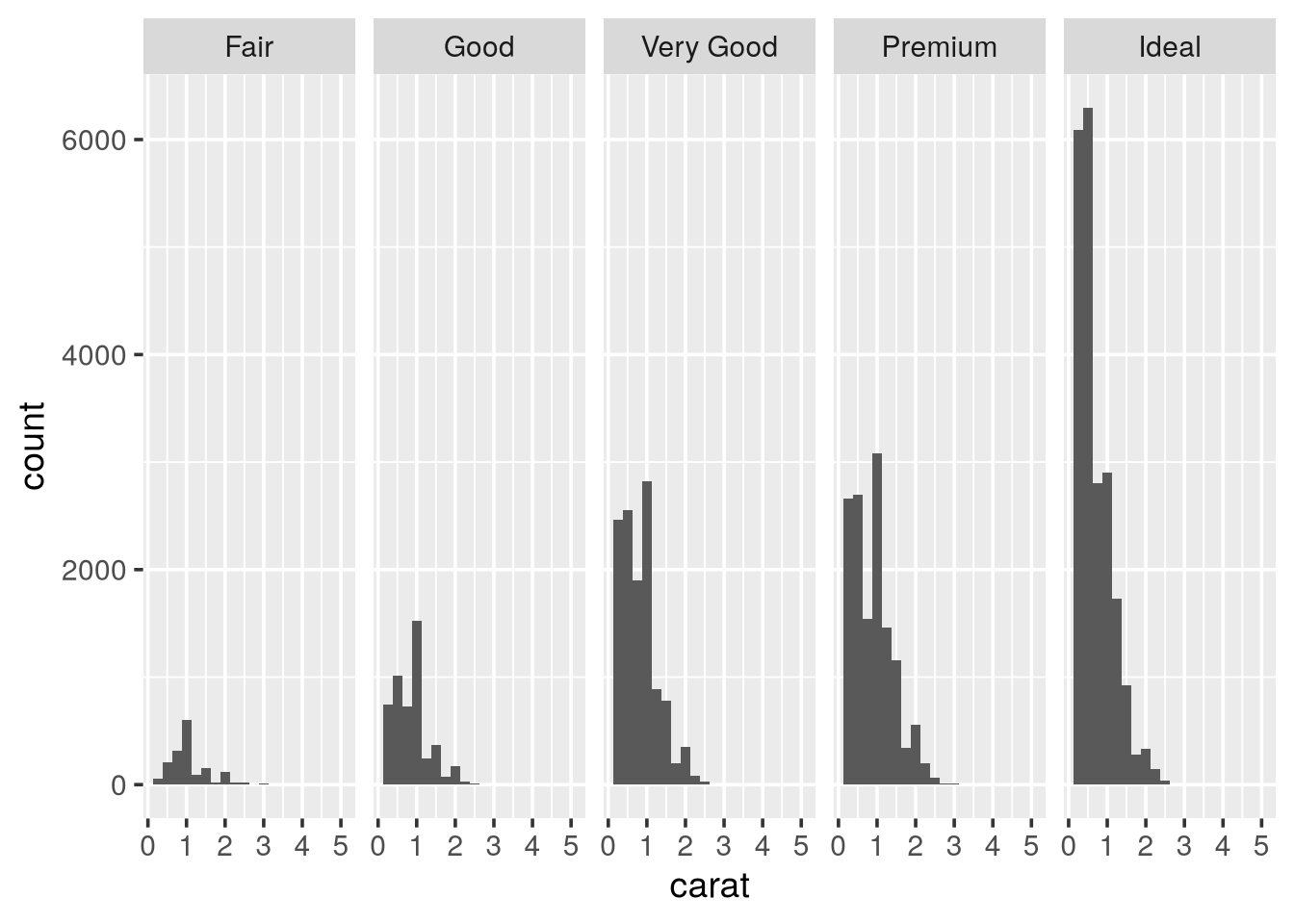 facet_wrap(~ clarity)For boxplots of carat vs cut: