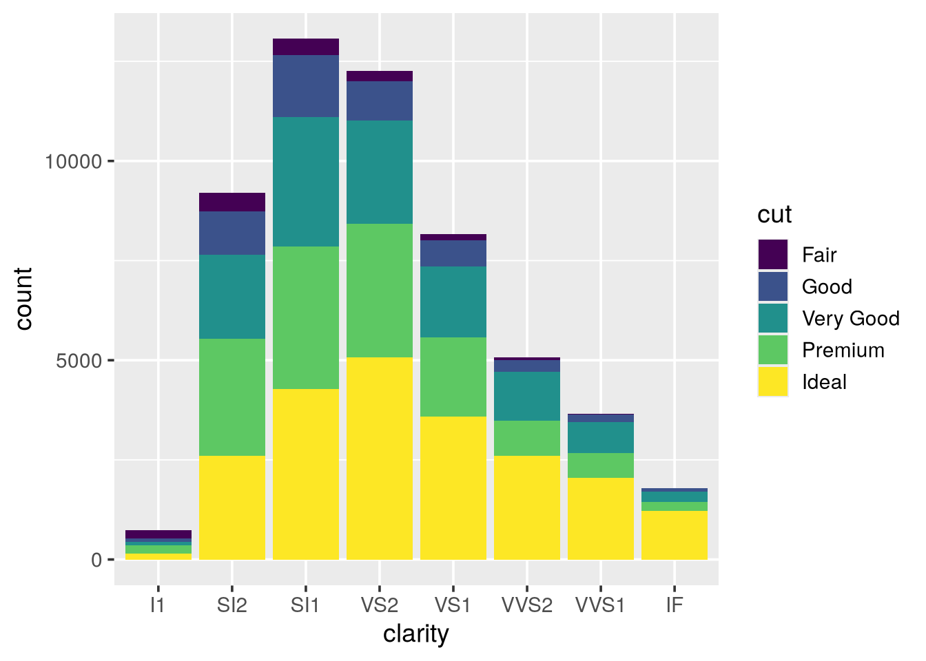 diamondsdata set some more. In particular, look at how the different attributes relate to price. Try to visualise several different attributes at once in relation to price, by mapping different variables to several of the available aesthetics.